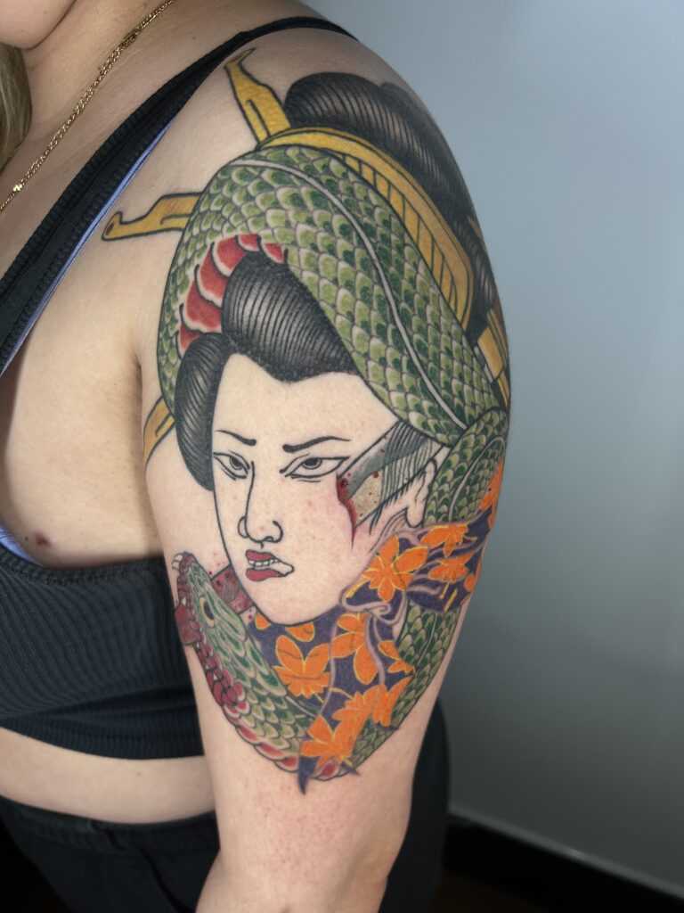 Kaya is a tattoo artist whose work blends Illustrative and Neo-Traditional tattooing with strong Japanese and Asian-inspired influences. Her style is defined by expressive linework, balanced compositions, and a thoughtful use of color that brings character and movement to every piece.